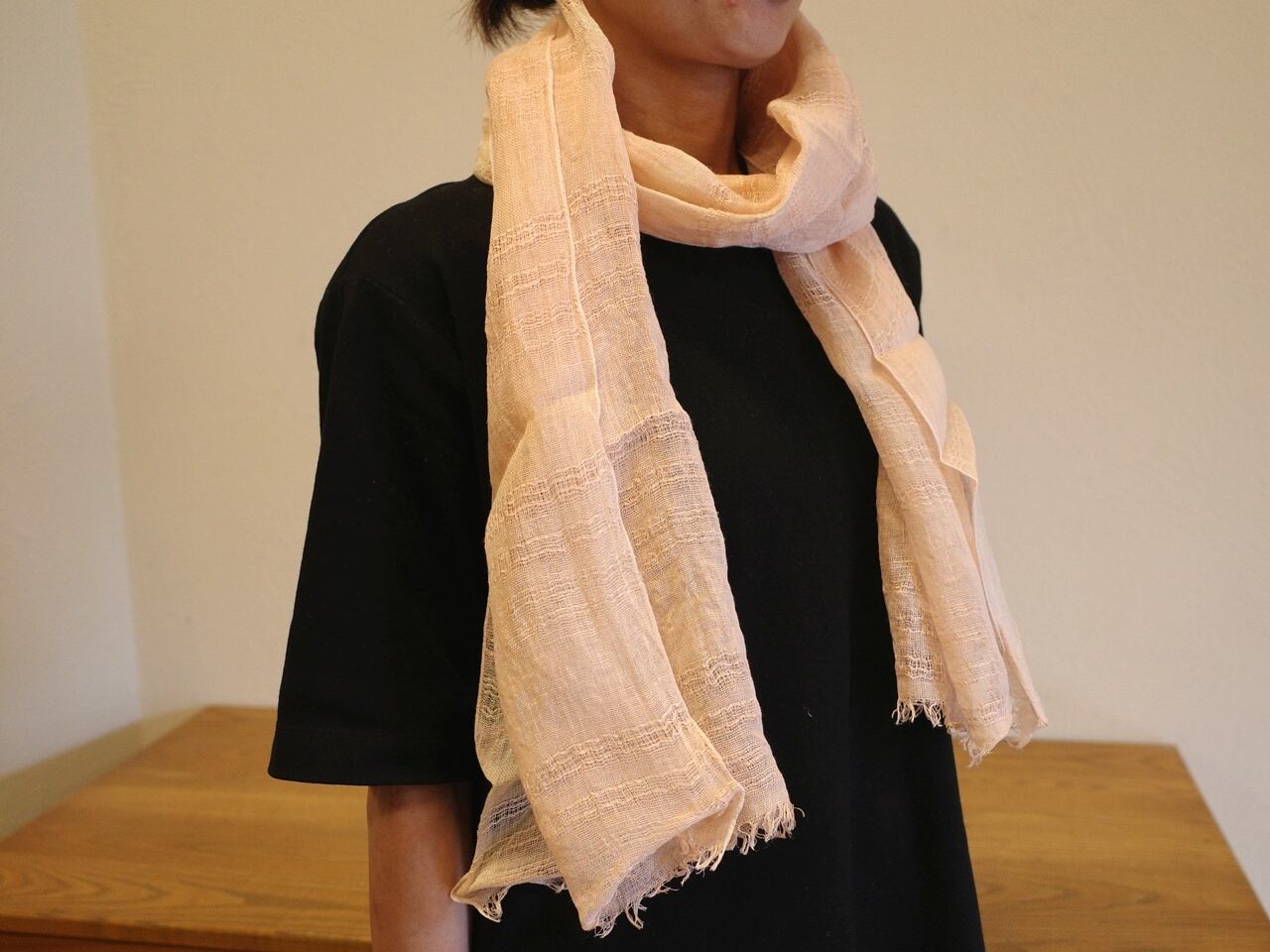 いちご染めストール【3】麻ラミー・47×172センチ